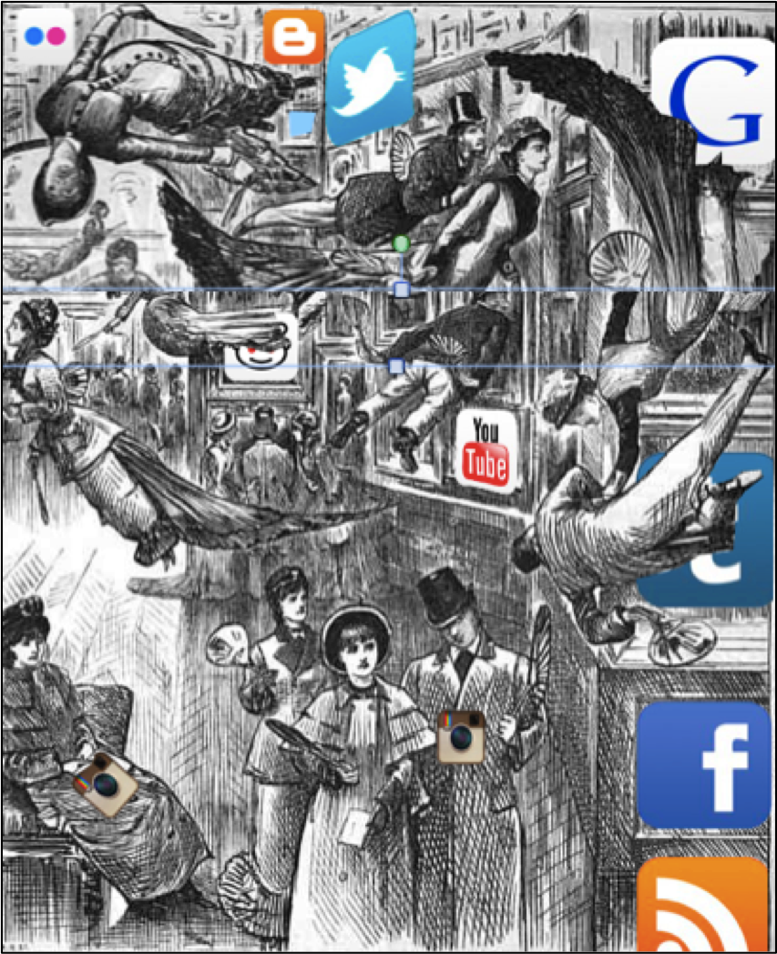 In replacing any public space or town square or church of the past, or even theatre, something like the screen had become new “public space.” It is mobile, capable of generating itself and adapting, addictogenic. When Hurricane Sandy knocked out power to downtown Manhattan, its stunned denizens shuffled north along First Avenue looking, first, not for food but for a Wi-Fi station or cell phone signal—a long zombie parade uptown to Starbucks. Thus the deferred question: can we speak of this new telepolis as, in any way, a “city” at all, or a parasitical occupation or disoccupation of it (or was there an “it”)? This question would be posed along with the most popular tropes today for naming a collective disindividuation of the “citizen,” of “politics,” of memory formations. Sometimes these terms—such as that of being blind to what is there—apply to how global citizenry blank before climate change, effects that stand outside the tele-circuit by kind and genre. Henry Giroux speaks of zombification or disimagination,[4] Bernard Stiegler incisively of a capture and invasive disruption of the “sensible” itself (a “proletarianization of the senses”[5])—each implies an effective capture, toxification, and shaping of collective behaviour yielding today’s neo-feudal klepto-mediacracies. The implication is that the supplement (techno-media) has displaced the host (person, voter, “subject”), or shaped a new caste (“proletarianized”) that is, going forward, disposable (Giroux): in turn, realities are conferred where they correspond to some stored filmloop, much as America’s “West” was a cinematic product. Nothing here exists, or is marked, that has not been cinematized in an extended sense. Yet this turn is also a point of capture by another, and since the state is now a hybrid and rogue entity, and the corporations faceless, and Potemkin “capitalism” itself digitally gamed, rigged by central banks and financialized debt, hence mutant, there is a question of the designs of these controls—and a “culture of distraction” or disrupted “attention” (Stiegler) that appears spellbound. A global civilization that, faced with irreversible tipping points impacting extinction events, accelerates, may or may not be called spellbound to or by a specific addictogenic screen.