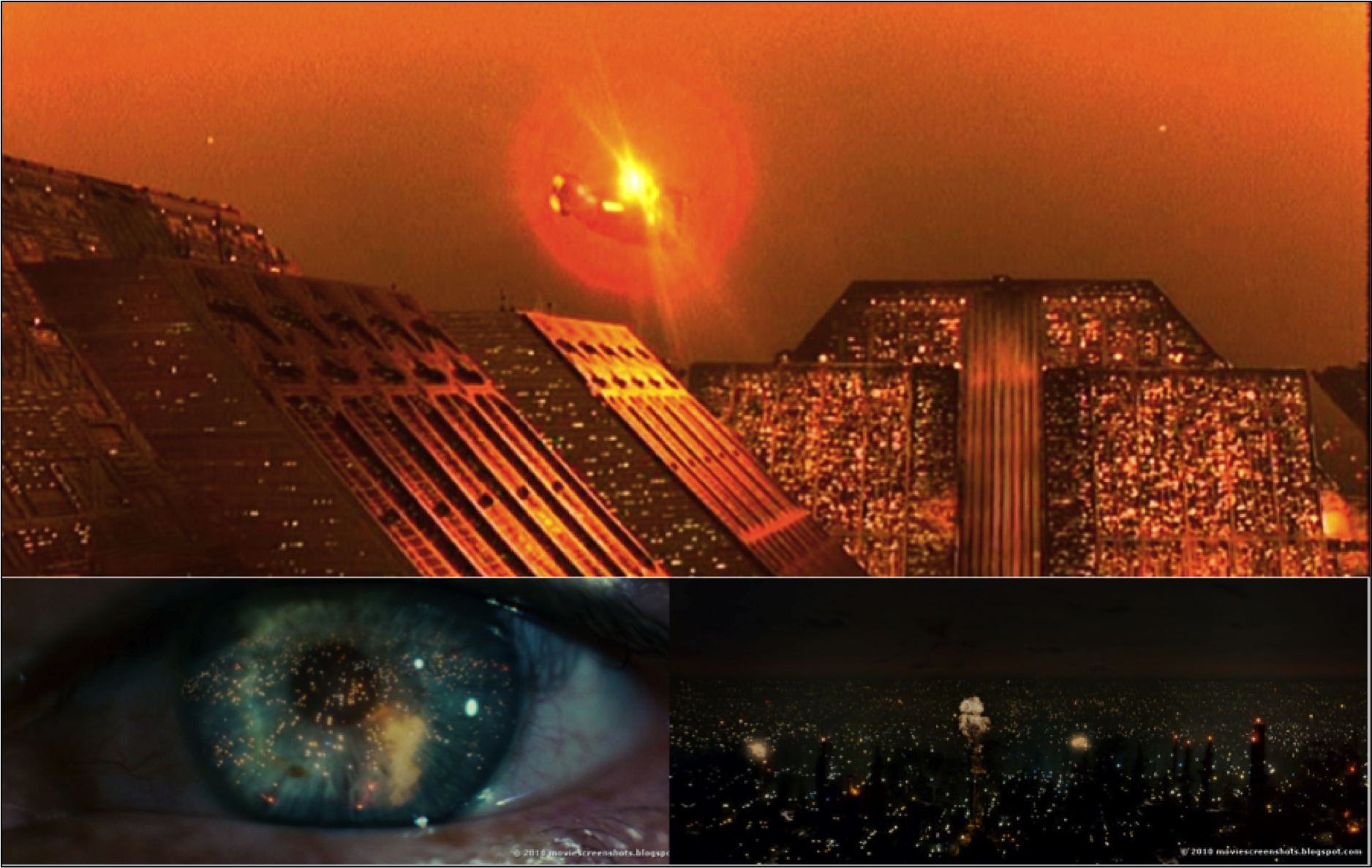 L.A. is advanced in climate change, not the California of mega-drought but its inversion, a tropically wet, Asian-inflected megalopolis in which the energy source of oil is produced within—the earth a contaminated enclosure for which “off planet” work is desirable. Memory is displaced onto photographs, meant to reassure, such as those which line Deckard’s piano yet, in fact, precede his life-time and proliferate as a history of photography itself before and outside any living identity. Animal life has become rare, traded away or eaten, replaced by perfect but expensive replicants—living museums of the extinct, passed in black market trading. The replicants themselves, however, are young (under four years old, developing human emotions), cite Milton by heart, are unlike the humans passionate to “live,” and love loyally. They are, as the advertisement for them says, “more human” than the burned out human forms on the streets—ignoring a half-naked woman being shot (if a replicant), bored by a violent sex show with a cyborg python. The corporate police centre above the pollution clouds (no “state” is indicated) oversees the “little people.” The screen becomes the citational hub-bub of time-travelling fashion styles and the architecture of early civilizations (Mayan pyramids), wrapped in the debris imagery of earth history and power. In this city the replicants are the “skin jobs”—what references figures on any screen, here in rebellion.